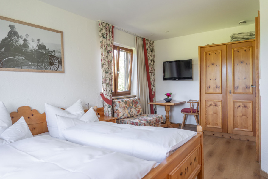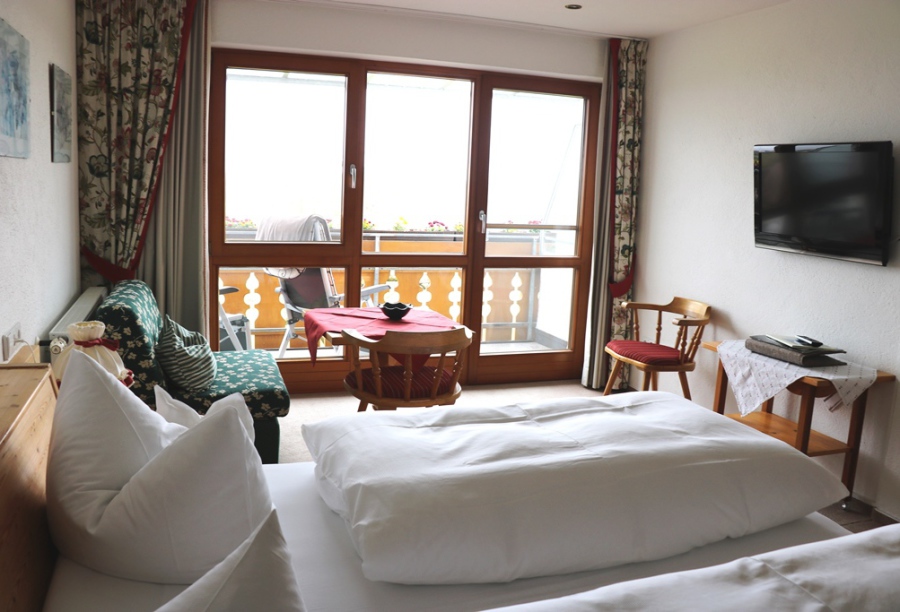 Viel Licht und Gemütlichkeit bietet unser kleines aber feines, liebevoll eingerichtetes Zimmer Nr. 6. Das Doppelzimmer mit Nord-Westblick befindet sich im 1. Stock unseres Gästehauses und ist 13 m² groß.