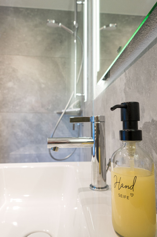 - Fön, Handtücher und Seife im Badbereich