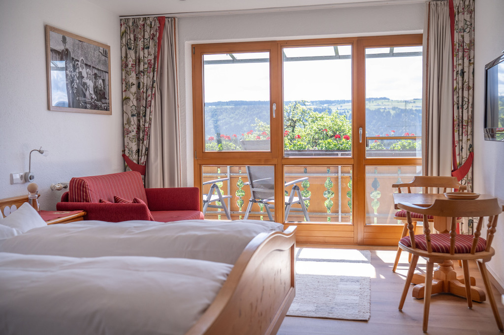Für eine ruhige Nacht und einen erholsamen Schlaf sorgt unser liebevoll eingerichtetes Zimmer Nr. 3. Das Doppelzimmer auf der Südseite befindet sich im 1. Stock unseres Gästehauses und ist 21 m²