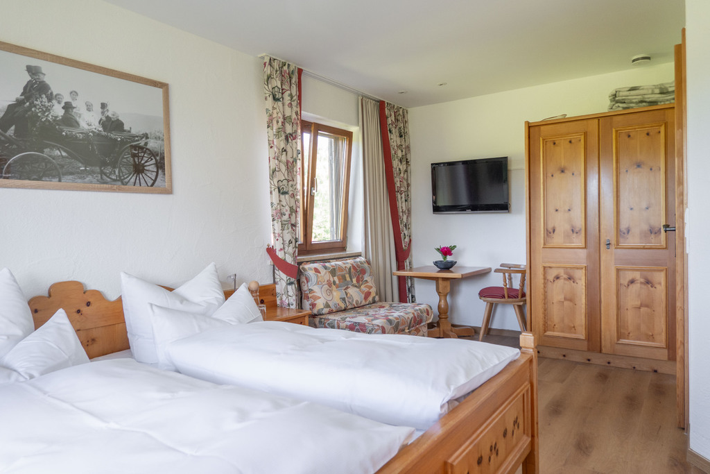 Viel Licht und Gemütlichkeit bietet unser kleines aber feines, liebevoll eingerichtetes Zimmer Nr. 6. Das Doppelzimmer mit Nord-Westblick befindet sich im 1. Stock unseres Gästehauses und ist 13
